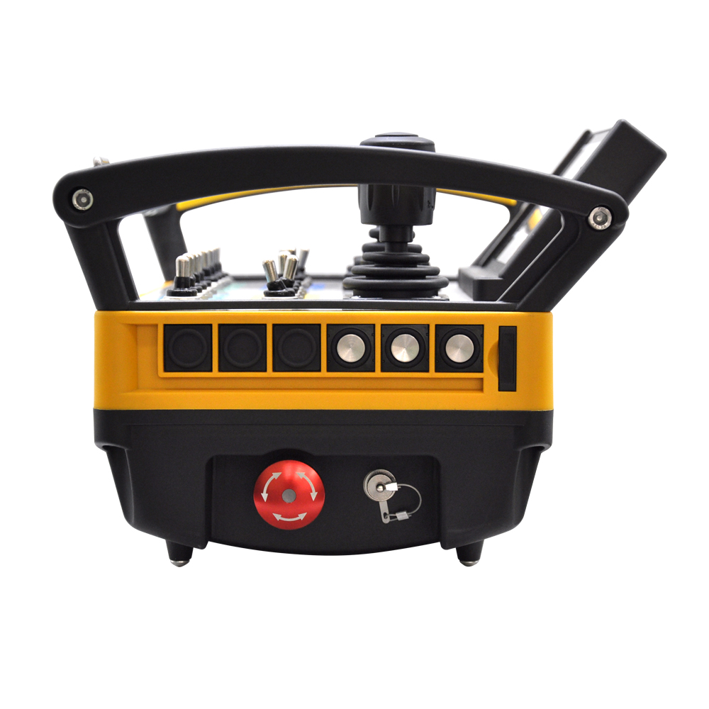 本發射器可以裝配多個撥動開關、按鈕、檔位開關和電位器,可以操作控制各項功能;比如發動機的啟動/停止、加速和減速、聲音信號以及液壓系統的流量速度控制等。采用高品質的操作桿和撥動開關,具有良好的操作手感。